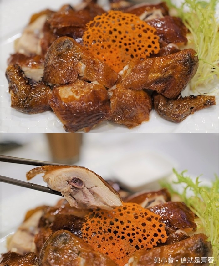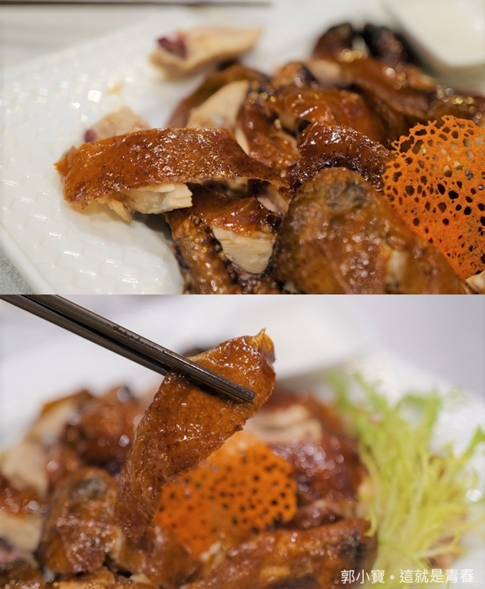 其實最吸引我的就是這一道耗時費工的脆皮雞,這兩年吃過幾家飯店的脆皮雞,我個人喜歡的脆皮雞真的都落在高雄的餐廳裡面,黎師傅的脆皮雞就是其中一間,用看的就是麝香味俱全,重點雞肉不會乾柴,一口咬下依然是把肉汁鎖在雞肉裡面,非常好吃!! |
