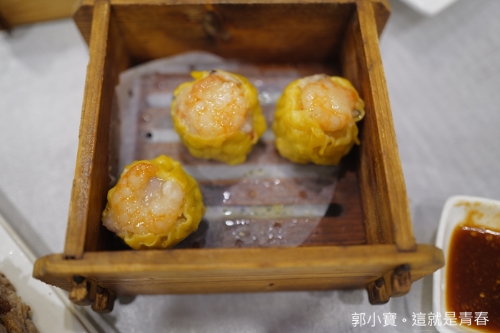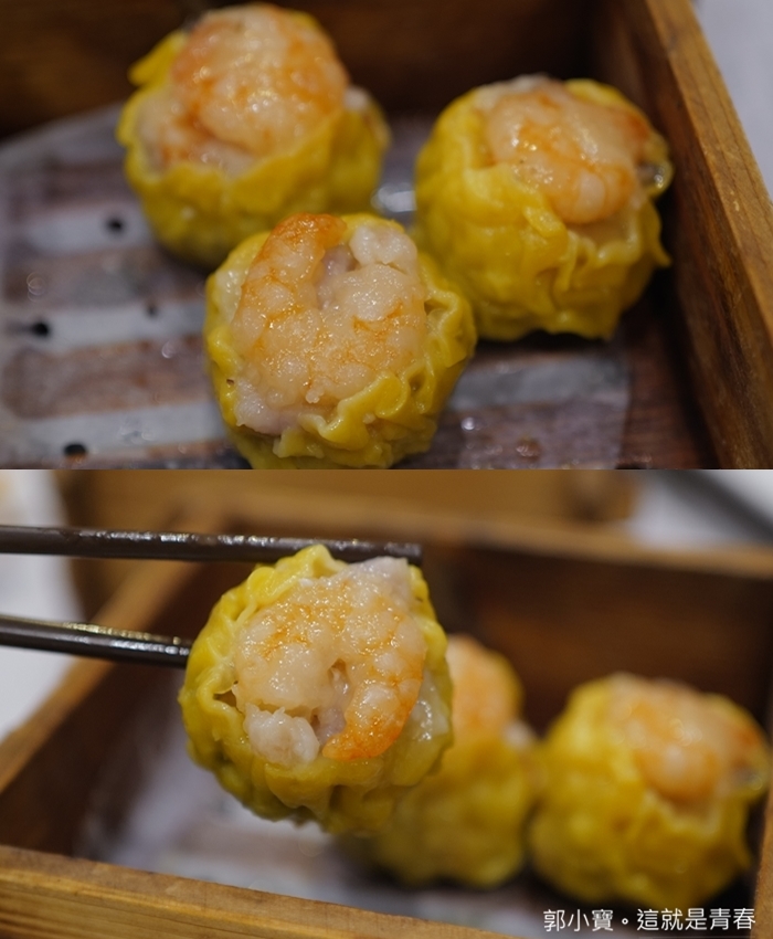 超大顆的鮮蝦燒賣,內餡的豬肉非常新鮮沒有豬腥味,燒賣皮厚度恰到好處,一口咬下買買的內餡肉汁還滿鮮甜的,蝦子是使用蝦仁,滿足感十足。 |