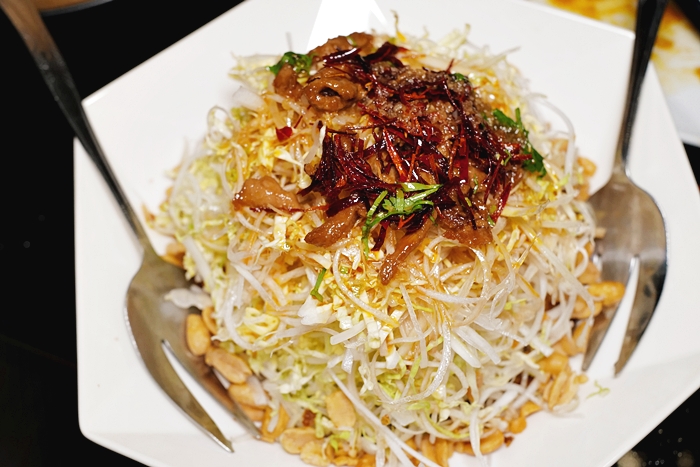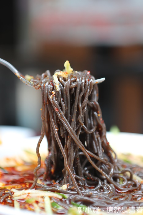 拌開後就可以享用了,吃起來有點像是冬粉的口感,因為帶點酸辣的滋味一樣相當開胃,口感滑溜帶脆,滿特別的一道菜,最近似乎也變成了很多人來大宅門的時候必點的一道涼菜,當成開胃菜其實確實滿不賴的。 |