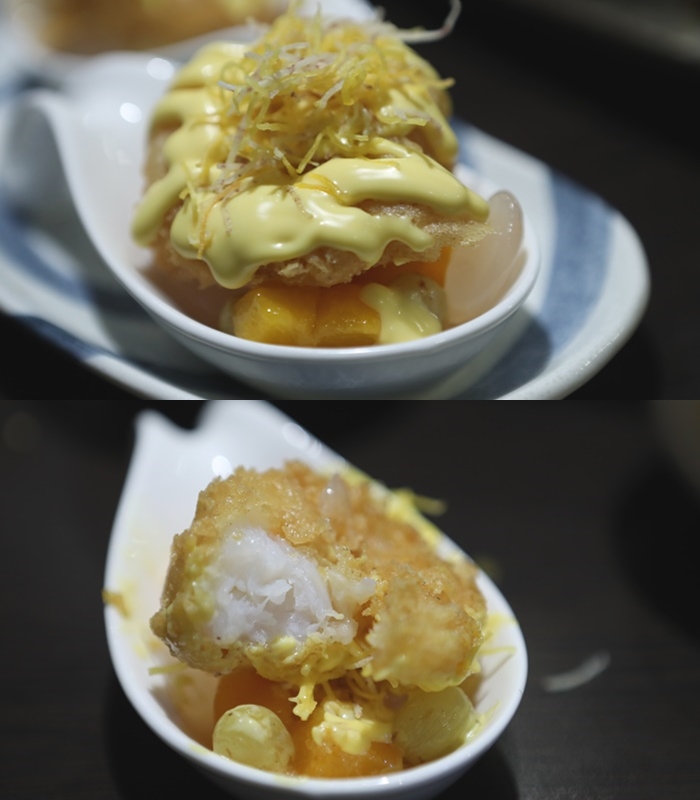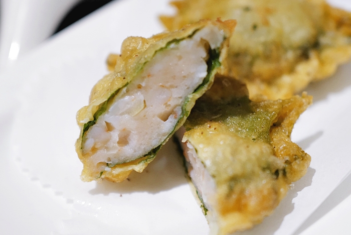 第一次吃到用紫蘇葉包裹著蝦漿去炸出來的蝦餅,一口咬下非常彈牙,外皮連同紫蘇葉都非常酥脆,有像是吃日式天婦羅的感覺,蝦漿非常鮮,口感也非常好! |