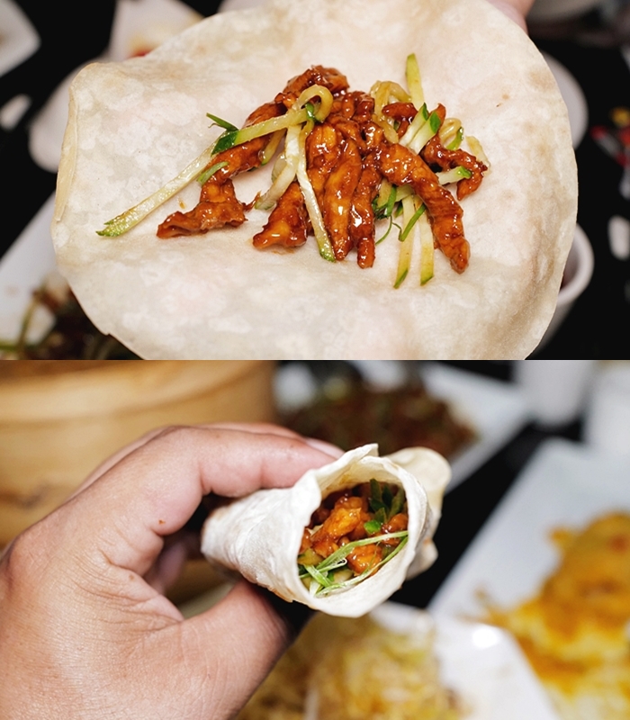 餅皮非常彈不會乾巴巴的,搭配京醬肉絲一整個把味道都提上來更有層次感,非常好吃! |