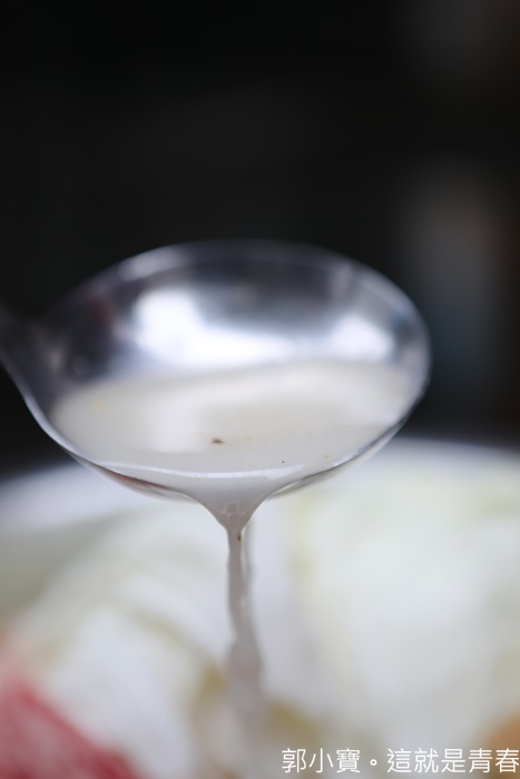 大宅門的白鍋千萬別用沾醬,因為鍋裡麵本身就有乾鍋的油氣香味,涮一下入口就滋味滿分,拜託你們一定要喝一下他的湯頭,真的超好喝的啦!!!!!
