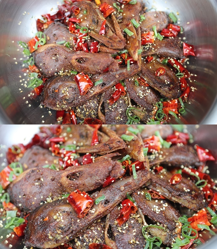 這乾鍋真的真的很值得一嚐,如果你還是不敢嘗試鴨頭的話,他們乾鍋其實還有很多其他食材選擇,有乾鍋豬腳、乾鍋魚頭、乾鍋蝦等等,但是我個人還是覺得一定要品嘗最道地的乾鍋鴨頭,那結合廣式滷水、河南魯菜的醬香還有川菜的椒麻鄉,那皮肉香香酥的一氣呵成真的相當痛快! |