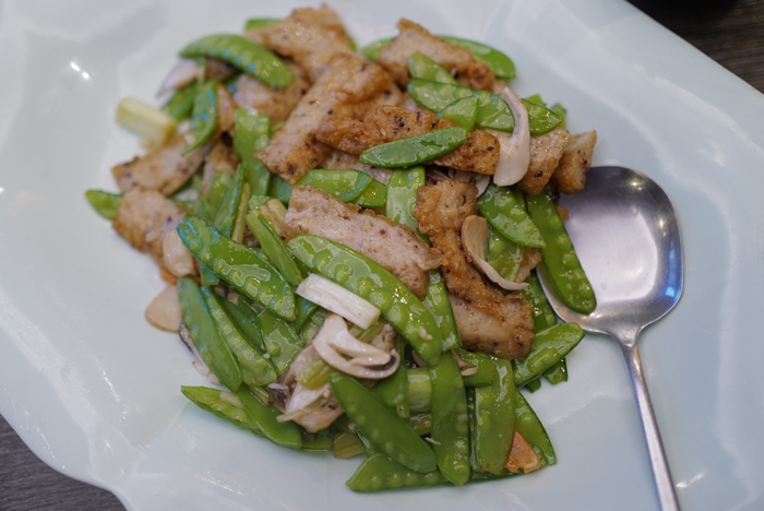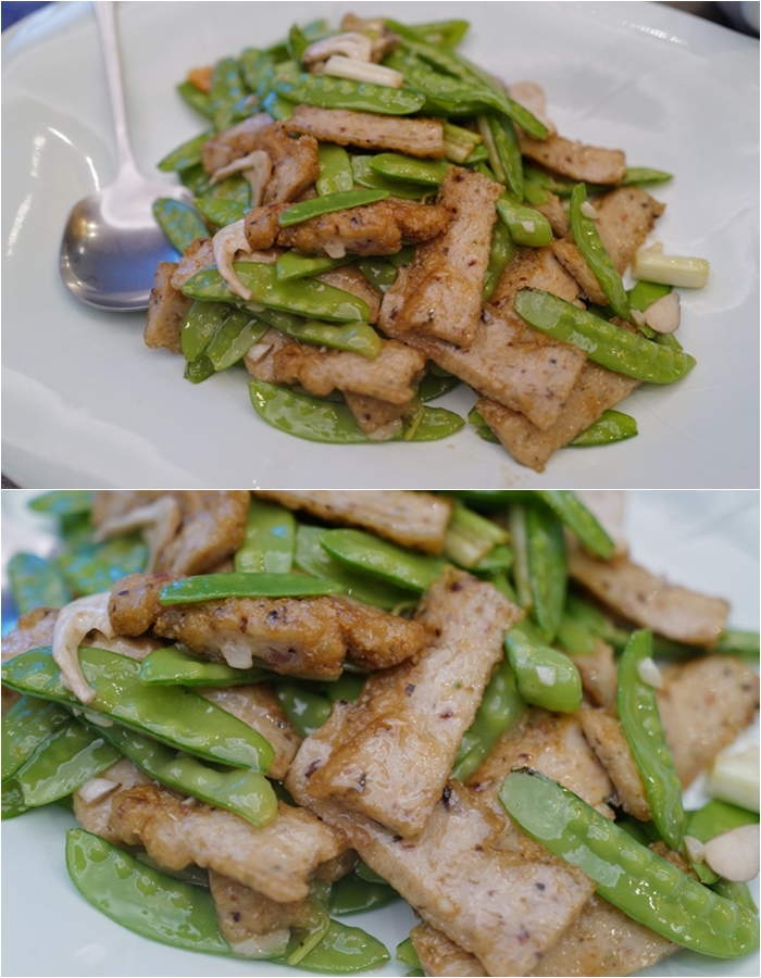鯪魚打成漿後做成魚餅吃起來的口感倒有點像是甜不辣,魚餅切片後咀嚼中還是可以吃到魚肉的鮮甜,吃起來鹹酥的滋味很順口,搭配四季豆的爽脆口感,一整個讓我也非常喜歡。 |