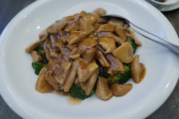 這大概也是我近年來吃過料理最好的鵝掌,勾芡醬汁濃而不膩,不管搭配百靈菇還是鵝掌都讓人喜愛,鵝掌輕輕用牙齒一剝就可以全數剝下,咀嚼那軟糯的口感越嚼越香,真的讓人欲罷不能,這鵝掌幾乎當天在場的每個人都很稱讚! |