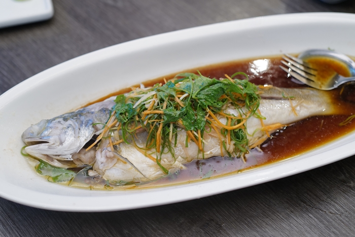 這一條魚也是值得推薦,使用雞油跟花雕下去蒸,當天活跳跳的鮮魚,那魚肉細緻肉汁鮮美,這條魚真的是100分,很久沒吃到那麼鮮美又可口的蒸魚了。 |