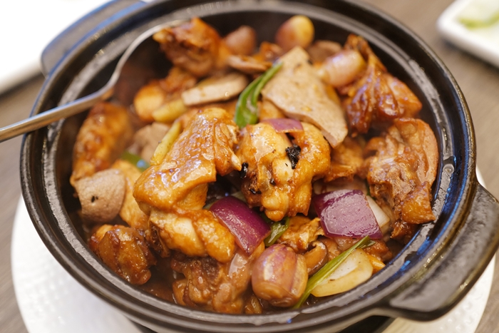 這一道本身就是富彩軒的招牌菜色,加上澳門友人也是衝著這一道菜來的,雞油、雞肉、金華火腿、鮑魚汁層層的鮮美味道堆疊出來的好滋味,但是每一種味道又不會互搶,滋味層次相當豐富,雞肉嫩的可口,這一道招牌確實了得。 |