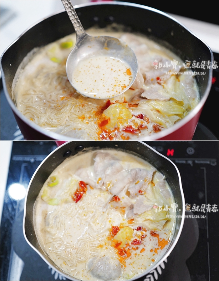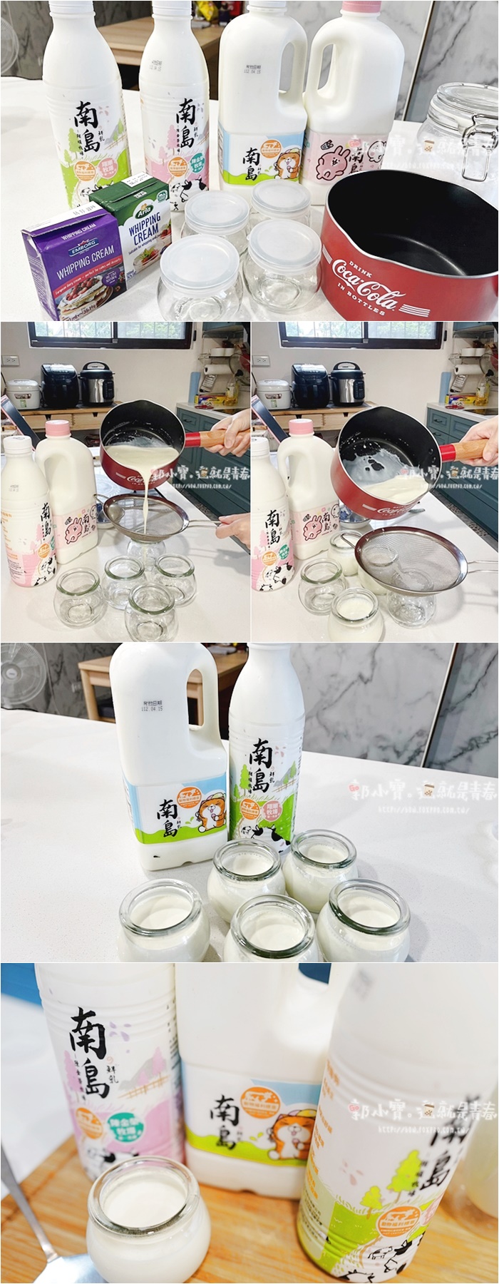 建議不要直接倒入鮮乳煮,煮到快好的時候再霸氣的倒入南島鮮乳,關火後一下子就可以濃到濃濃奶香味了,記得不要先倒鮮乳然後把火開太大,不然營養會流失掉,香氣也很少很多,如果擔心煮鮮乳鍋會出現奶皮的話,記得下鍋後一直攪拌就不會出現奶皮了! |
