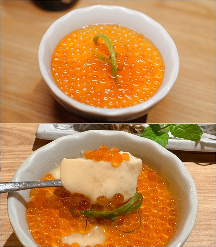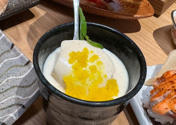 老婆的茶碗蒸,茶碗蒸有兩款,基本款的茶碗蒸上面也加了鯡魚卵,滿滿的鯡魚卵也很好吃。 |