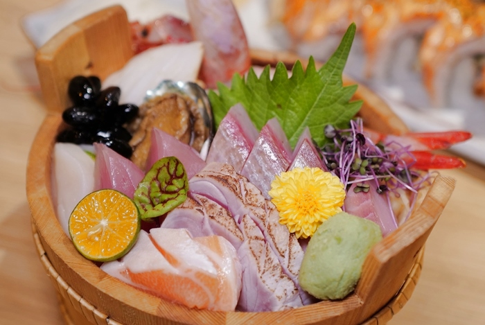 告春食彩小家日本料理等級比較高的生食丼飯價格都很實在,沒有因為是觀光地區所以價位比較高,但是生食的數量跟品質卻更多更好,我的招牌丼可以看到滿滿的生魚片,加上還有一顆鮑魚、干貝跟大甜蝦,山葵用的不錯,不是那種死嗆辣的山葵。