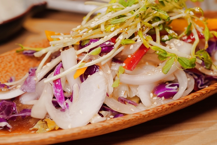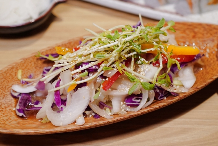 第一口發現意外的好吃,而且味道很像圓山的惡魔泡菜,酸辣甜的滋味非常順口,問了一下廚師說是自己親手做的,這泡菜可以拿去團購了,真的很ㄕㄨㄚˋ嘴。 |