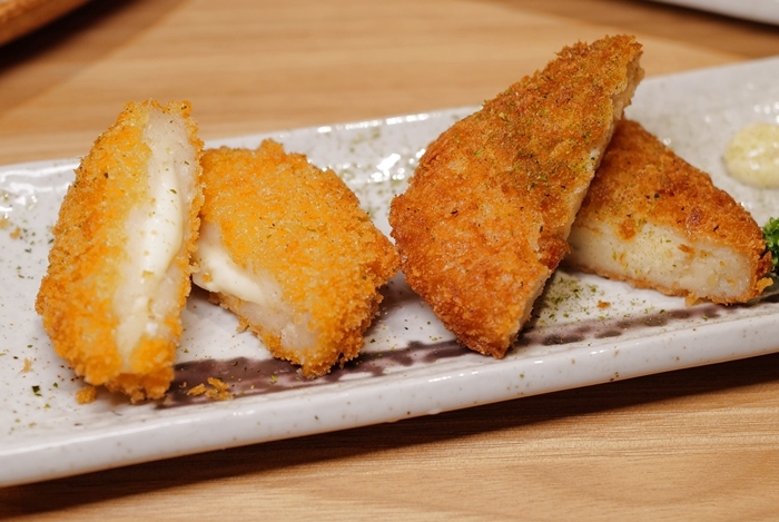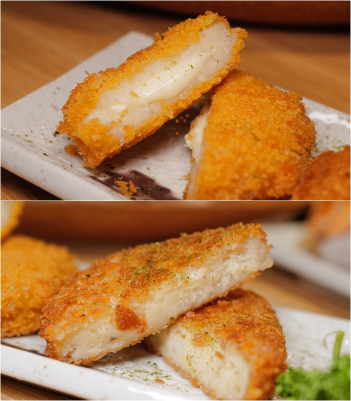 可樂餅一分兩塊,兩塊都是不同口味,是一個起司另一個是蔬菜,吃起來都不不油,外皮滿酥脆的,薄皮裹粉我還滿愛的。 |