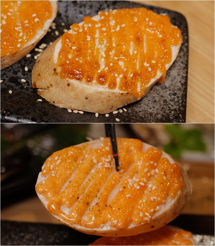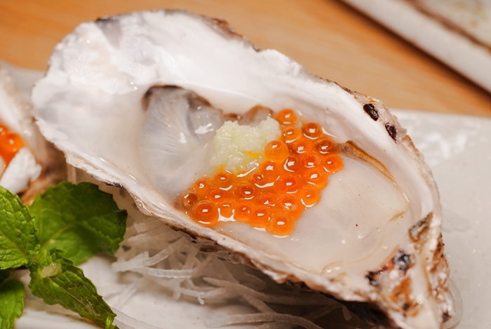 廣島生蠔品質很好,一口咬下也不會有腥味,海洋的味道在嘴裡擴散,鮭魚卵一起吃的話,鮭魚卵的鹹味跟生蠔的鮮甜讓整體的味道層次更豐富一些。 |
