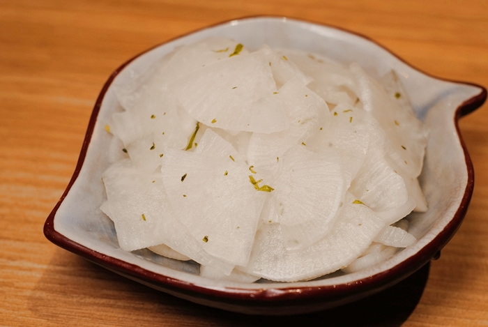 紫蘇蘿蔔也跟一般日式餐廳略有不同,紫蘇味非常重,不帶湯水,鹹度較高一點,搭配海鮮還滿適合的。 |