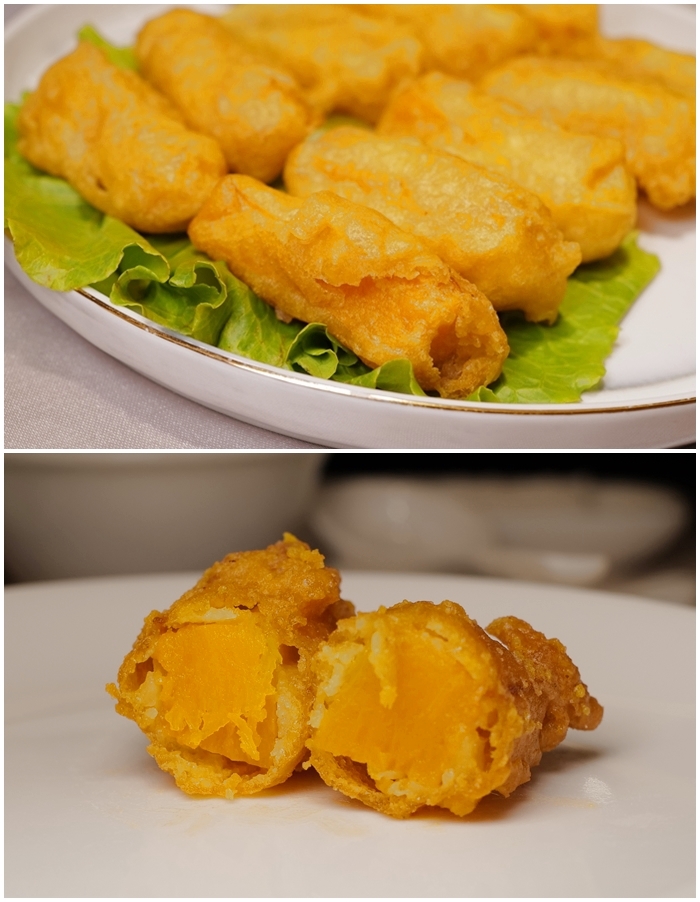 打的非常綿密的南瓜泥加上軟綿帶點微酥的炸皮,也是很不賴。 |