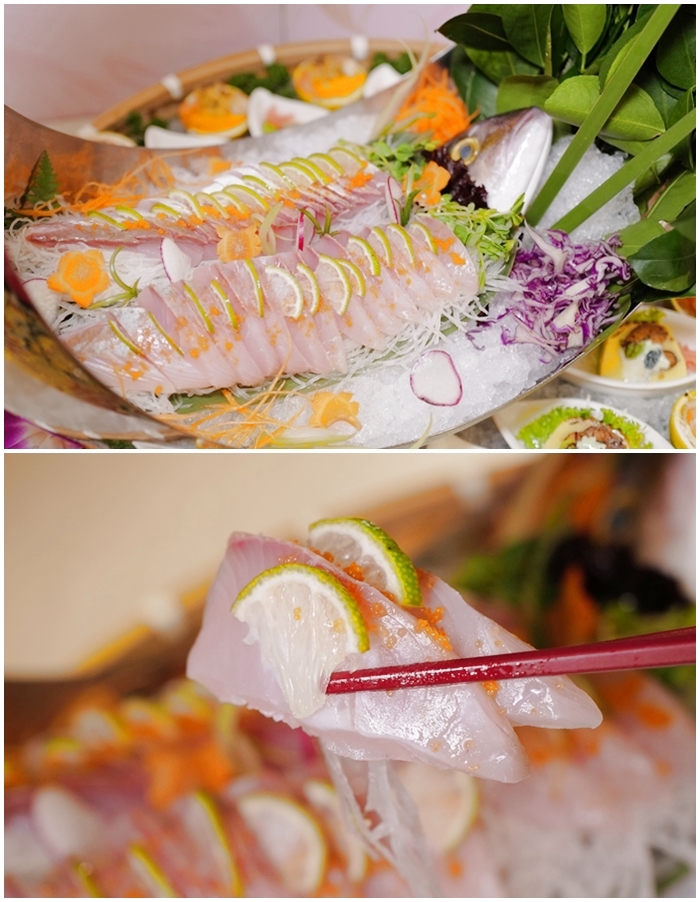 每天都是由東港新鮮現送的海鮮,紅甘魚肉筷子用力一夾後還會回彈就可以知道非常新鮮,吃起來也不會有乾扁的口感,非常新鮮鮮甜。 |