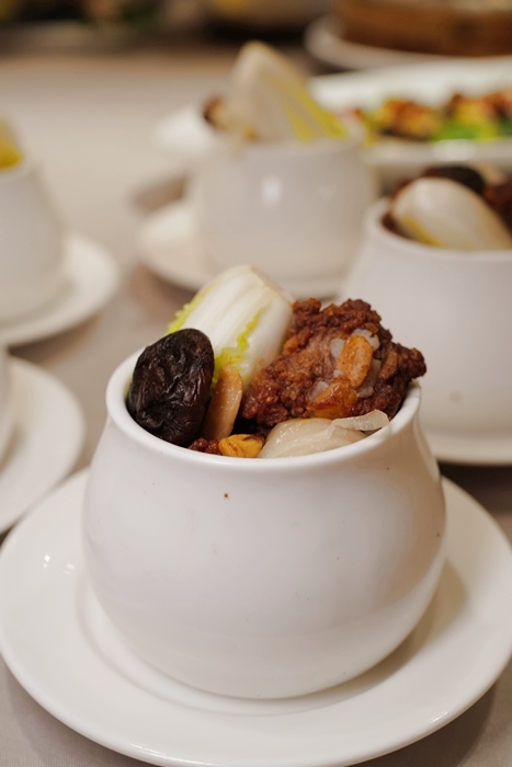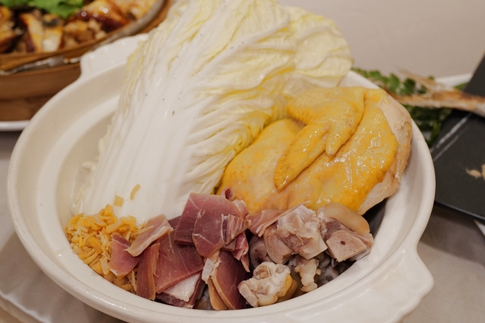 重頭戲就是這一鍋雞湯,在台灣雞湯非常多,但是來來去去就是只有幾家能做出讓人難忘的雞湯,88會館郭董私房菜就是其中一家,熬煮8小時以上的功夫菜,當然也下了重本,除了豬腳、雞腳、金華火腿、干貝、白菜等食材,選用放山土雞一起去長時間熬煮,每一口湯都可以喝到豬腳熬煮出來的黏、金華火腿的鮮、放山土雞的香以及其他食材的滋味,這一鍋最後我喝到欲罷不能,還打包帶回家享受! |