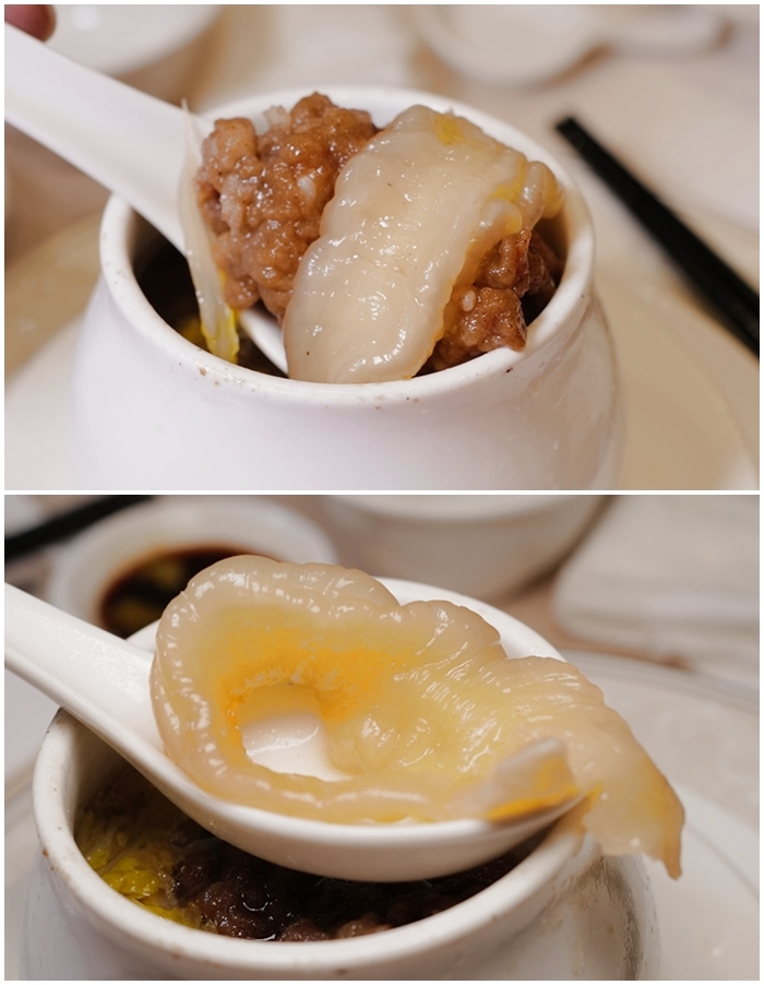 排骨酥同樣燉非常軟爛,且放入嘴裡那排骨酥的滋味不會有焦味,搭配超貴的花膠更是霸氣,花膠的份量頗多,入口綿密帶點彈脆的口感讓人愛不釋口。 |