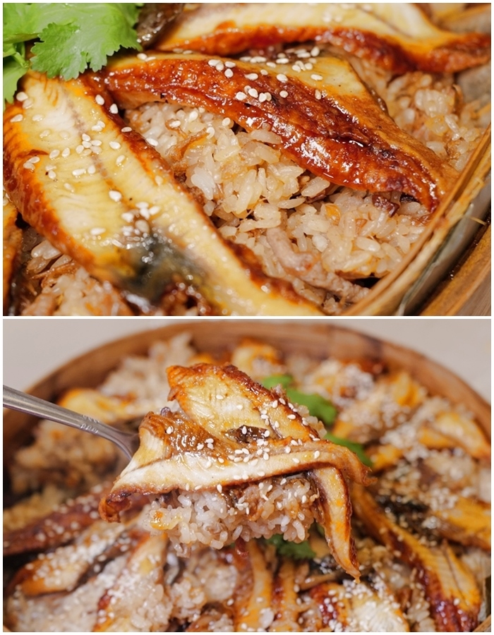 特別使用兩種糯米下去混合蒸煮,長短糯米的黏性跟口感略有不同,入口後在嘴裡的口感相當豐富,咀嚼起來變化較多,搭配日本鰻魚跟特製的浦燒醬,讓整體的滋味又多了很多層次,烹煮過程完全不加一滴水只用麻油跟米酒來提味,確實讓整體的鰻魚油飯高出好幾級,鰻魚挑的很好,不像台灣的鰻魚都養的較大隻導致皮非常厚,這邊的鰻魚非常可口。 |