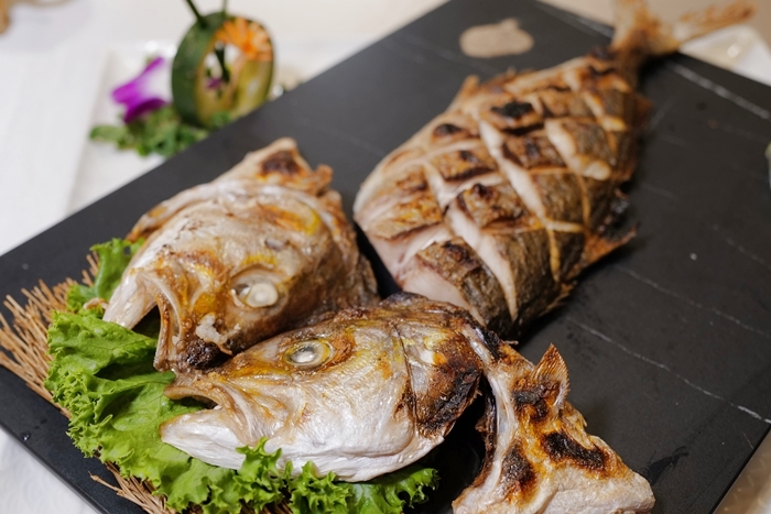一開始的生魚片另一吃就是用鹽烤的方式,紅甘的魚肉鹽烤後入口非常細緻,魚皮烤到酥脆也很厲害,且還保留了魚肉的肉汁跟鮮度,瞬間就被大家搶食一空。 |