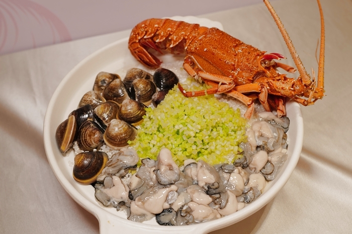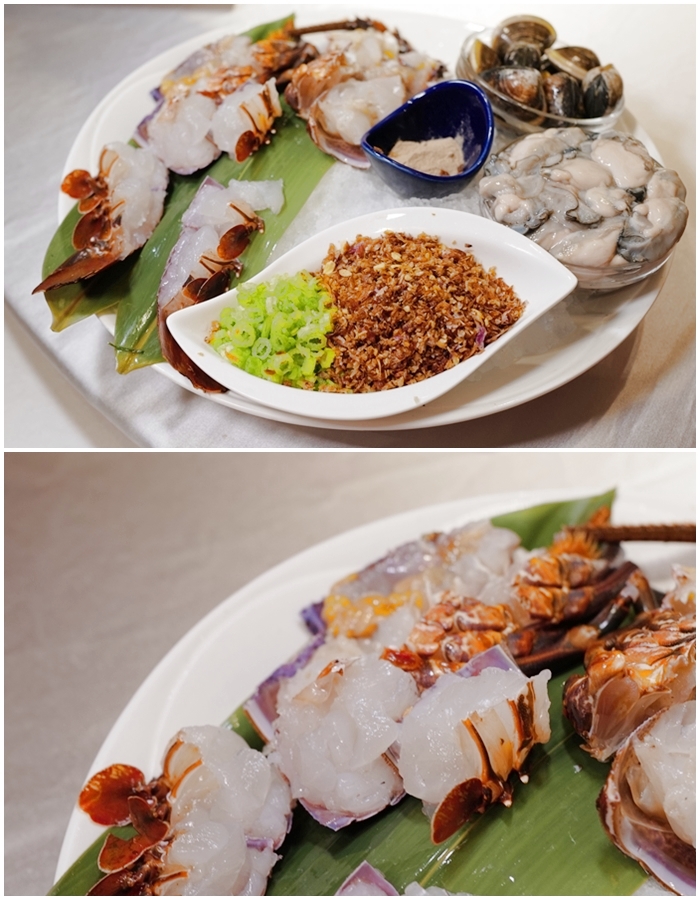吃不夠的人可以像我們一樣家點足1斤重澳洲活龍蝦,再加上大蛤蠣、大鮮蚵等,是老饕必點大菜,尤其看到還有超多的蒜酥,這海鮮粥還沒熬我就可以開始流口水了,偷偷用了筷子搓了一下龍蝦肉,龍蝦肉馬上就回彈,活生生的現宰海鮮啊!!!! |