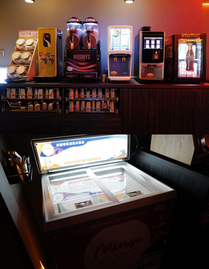 飲料也都是自助吧,提供多種冷熱飲,肥宅我的快樂水當然也有提供,另外冰淇淋提供的是泰國明果冰淇淋(Mingo)。 |