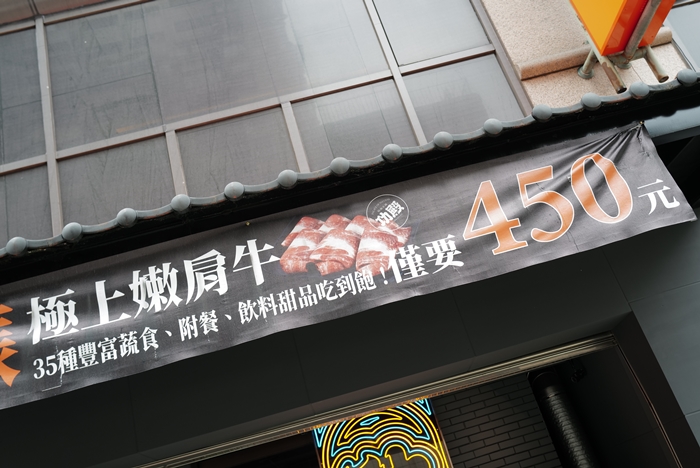 要不是門口掛了極上嫩肩牛450元我還真的沒發現她就是火鍋店,附近民營停車場非常多,停車也滿方便的,還有剛好在四個捷運站中間,所以步行過來也沒問題的。 |