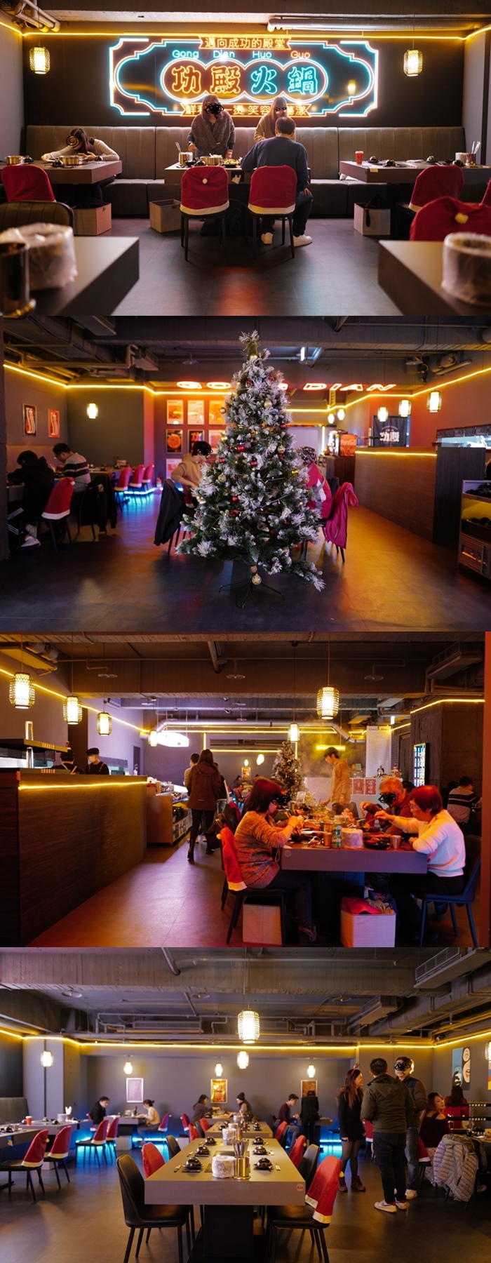 功殿特級火鍋內部空間非常大,一進入就感覺帶點工業風跟夜店風的感覺,有別於一般火鍋店的風格,加上用了大量的造型霓虹燈取裝飾,難怪可以吸引大批年輕人來用餐,對於來這邊聚餐跟包場聚會的客人來說,更有歡樂的氣氛。 |
