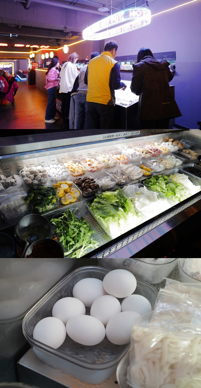 自助吧有超過35種食材,包含時令疏菜、火鍋料、鴨血、麵類等都很推薦,餃類吃起來都很不賴,似乎都是挑選手工餃類,還有很多人喜歡的烏龍麵,重點是這邊的生雞蛋也是免費提供,我個人最愛的就是把生雞蛋打到麻辣鍋裡面煮成麻辣蛋,看到有提供生雞蛋超開心!