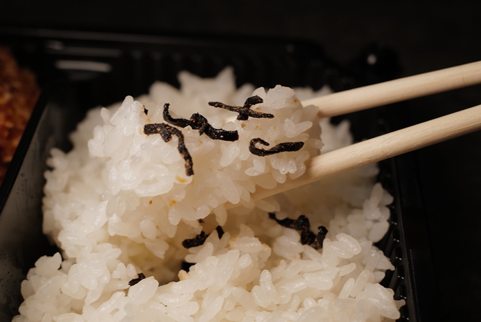 特別標榜是使用日本秋田美人小町米,秋田美人小町米跟新之助的差別很明顯,相較起來秋田美人小町米更適合台灣的炊飯工具來使用,口感渾圓飽滿且不太黏,看起來頗有光澤,搭配一些昆布鹽,滋味還算不錯。 |