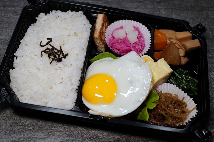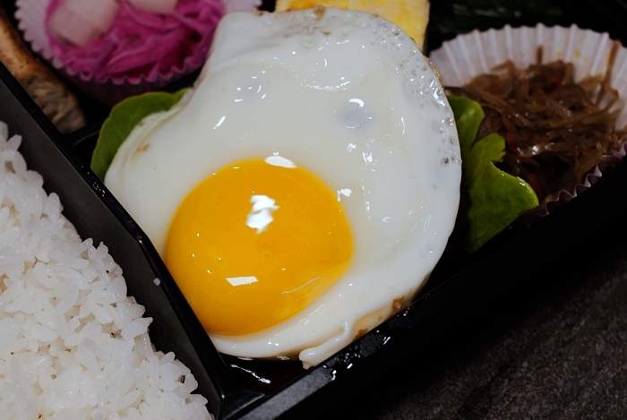 漢堡排便當在台灣相當少見,這類型的便當深受很多大小朋友跟的喜愛,一顆半面荷包蛋看起來就很可口,攪拌在白飯裡我覺得滋味會更好。 |