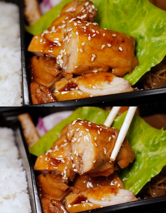 照燒雞的醬汁似乎跟以前比起來調了淡一點,吃起來的負擔不會感覺那麼重,雞肉也都是使用雞腿肉。 |