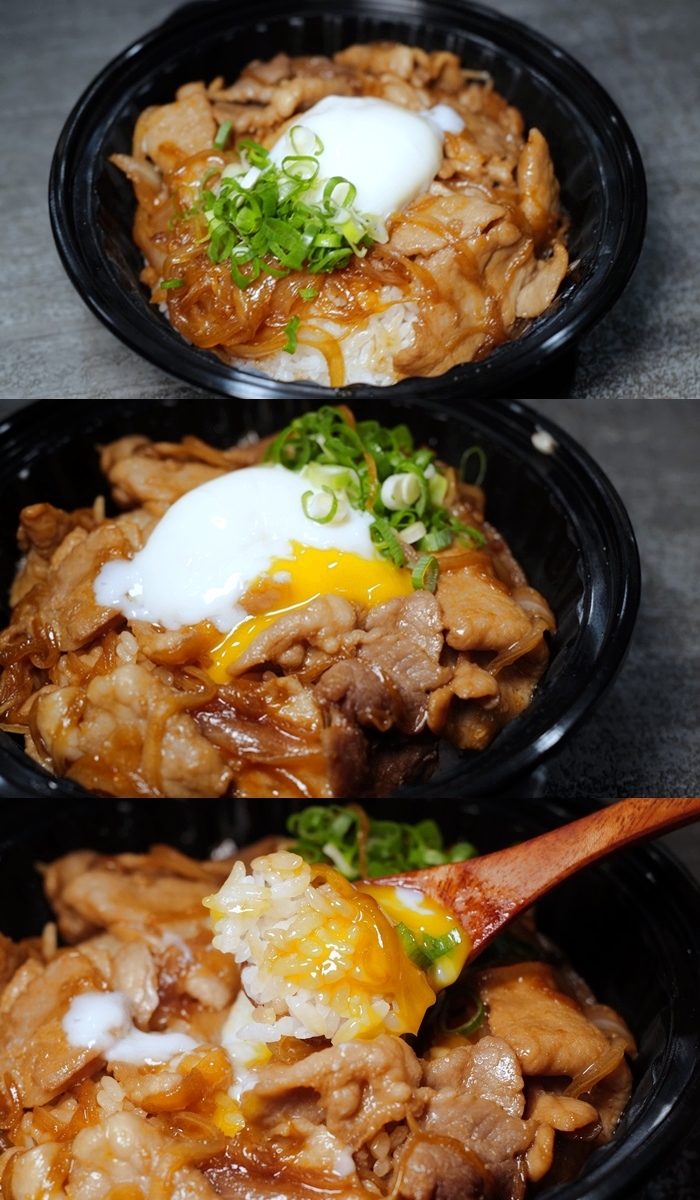 滑蛋牛肉丼我還滿喜歡的,跟吉野家的牛丼吃起來調味非常像,不過牛肉片給的較大方,肥瘦頗為均勻的牛肉片吃起來相對更對味,搭配蛋黃吃起來更滿意。 |