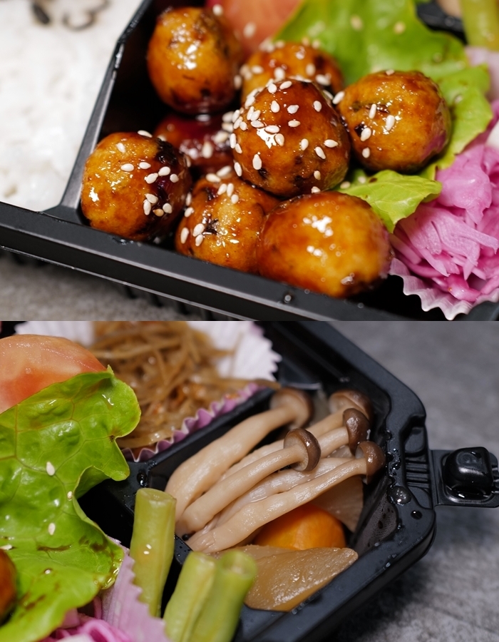 素食便當的配菜也相當豐富,素食雞肉丸子的口感一點都吃不出來是素食,非常好吃的素食便當。 |