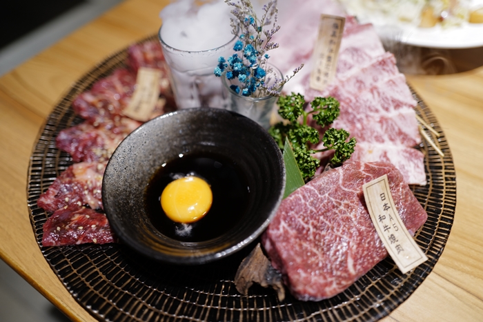 點的和牛盤隨之就上來了,基本上我還是會推薦大家去日本吃和牛絕對比較划算,台灣的燒肉店基本上用的和牛即使是日本的,也不會真實的跟你說用哪個地區的和牛跟哪個部位,在日本就算是A5和牛也是會有分部位,不同部位價差也很大。 |