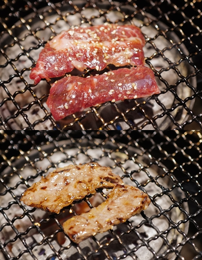 考完後入口後口感還滿嫩的,也有些油脂,可惜油脂比較沒有甜度,目前在台灣吃過不管是屋馬還是茶六一堆燒肉店,大多和牛的油脂都沒有什麼甜度,不過相比其他燒肉大店,算是正常發揮了。 |
