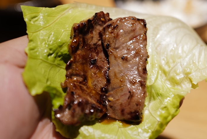 因為橫膈膜的油脂較多,所以很適合包著生菜一起食用。 |