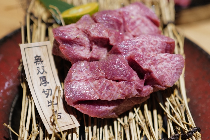 無雙的厚切牛舌確實比起其他店家賣相好了非常多,夠厚以外也幫客人改刀改的不錯,讓客人烤完後可以方便剪開,吃起來油脂跟甜度有超乎我的想像,我個人對他們的牛舌還挺滿意的。 |