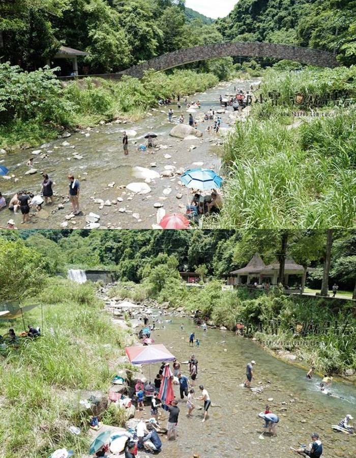一到這邊就可以看到下方溪流有超多來戲水的民眾跟人潮,夏天的時候太陽非常大,這邊沒有什麼遮蔽物。