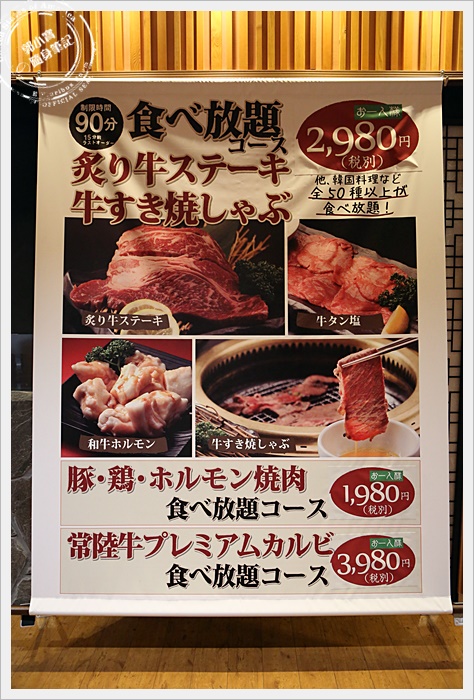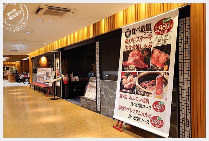 到達日本第一個晚上就是準備要找一間燒肉吃到飽的好好的大吃一頓,因為時間已經有點晚了,所以來不及在手機網路上找資料了,想說趕快吃一吃就回飯店睡覺,所以就選擇了在水戶車站的美食街找一找餐廳,就看到了這一間常陸牛吃到飽的燒肉店,我基本上也沒吃過常陸牛,所以馬上就鎖定這一家燒肉店。