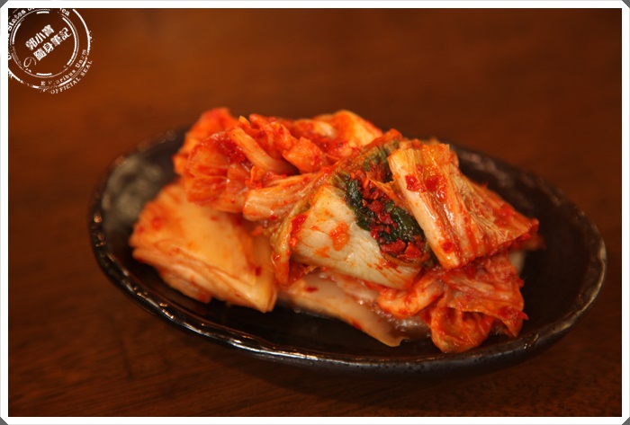 | 單點了一盤泡菜,泡菜有辣度,鮮少在日本吃到有辣度的泡菜,包著生菜也很好吃。 |