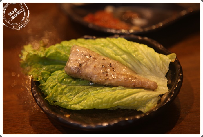 | 服務人員說他們的五花肉就是包著生菜沾辣味噌,我真的覺得還滿好吃的,後來單吃了一塊五花肉確實軟嫩到極點,似乎用鹽水川燙過,不管是包生菜還是直接吃都美味呢! |