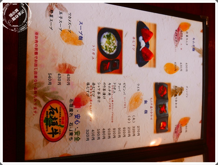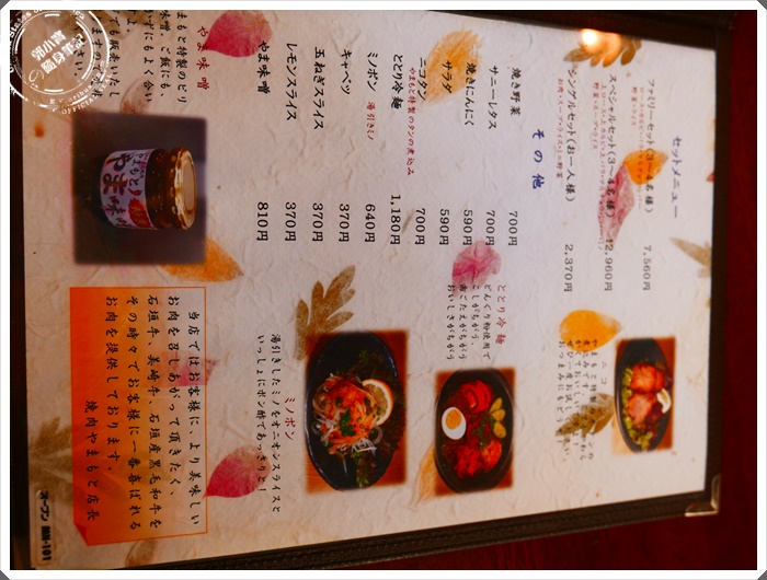 山本燒肉的價位不低,我們三個人這一餐吃下來大約落在1萬7日幣左右,他們家的菜單都是日文沒有圖片,如果你真的不懂日文又有搶到位子,倒不如就直接拿小寶拍的照片給他看來點餐比較快XD